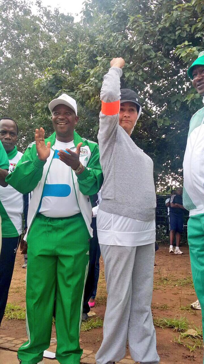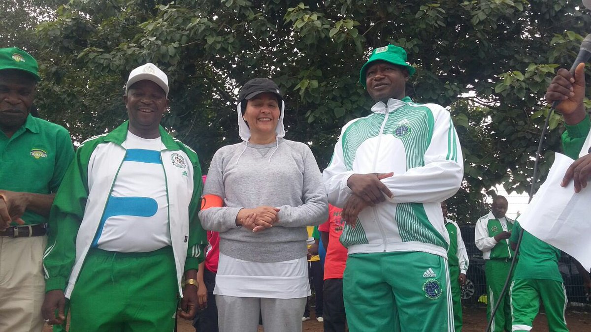 She shared pictures of herself at the national stadium, after being directed to go jogging with her colleagues. The Minister of state for Environment, Ibrahum Usman Jibril was also there for fitfam.