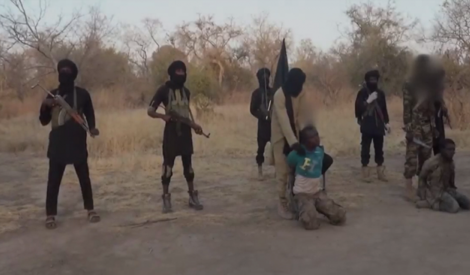 Monday's video shows a man identified as Dawoud Muhammad of Baga city on his knees in the bush before several armed and masked fighters. In response to questions, Muhammad says a police officer paid him 5,000 naira ($25) to spy and promised to make him so rich he would never have to farm again. The other man is identified as Muhammad Awlu.