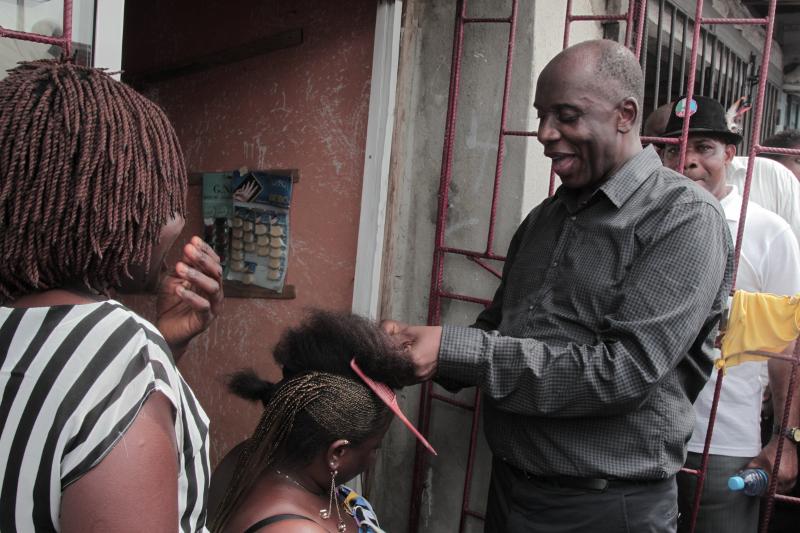 Oh wow Rivers state governor Rotimi Amaechi making a woman's hair