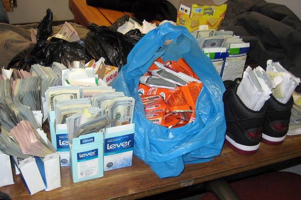 A report filed in Brooklyn federal court said: “Examination of two pieces of luggage checked by the defendant revealed more than $770,000 in additional United States currency, concealed in various places, including boxes of the following: hand soaps, Band-aids, Thera-flu, Splenda and Alka-Seltzer.