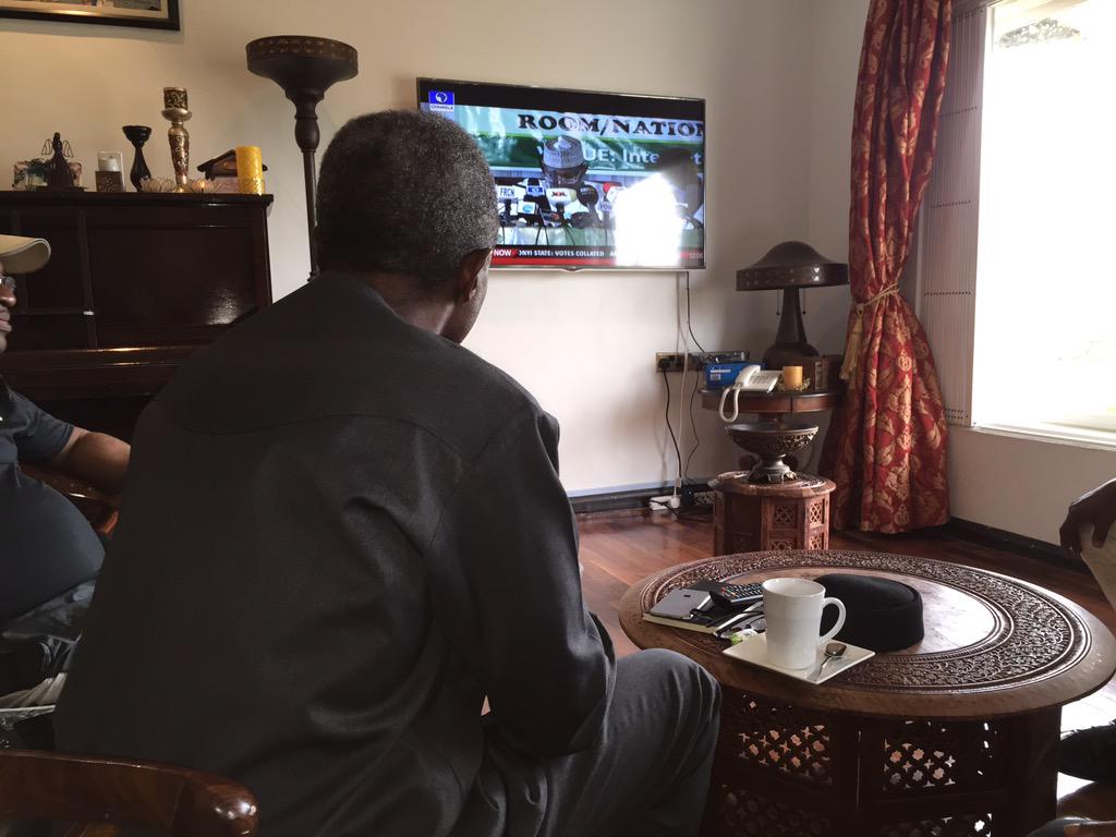 Picture: VP candidate of APC Prof Osinbajo watching the INEC results from his hom