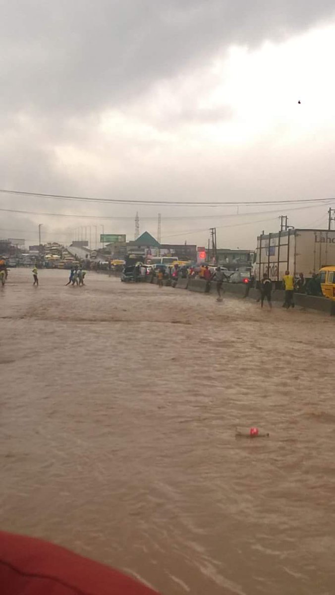 Check out this car buried flood over the weekend in Sango Ota, Ogun state